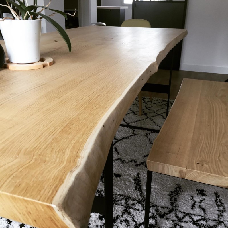Guillaume traite au maximum ses déchets et chutes de bois, il réutilise les chutes (non utilisables pour du meuble) et en fait des parements sur mesure. Il arrive ainsi à retraiter quasiment 100% de son bois massif !